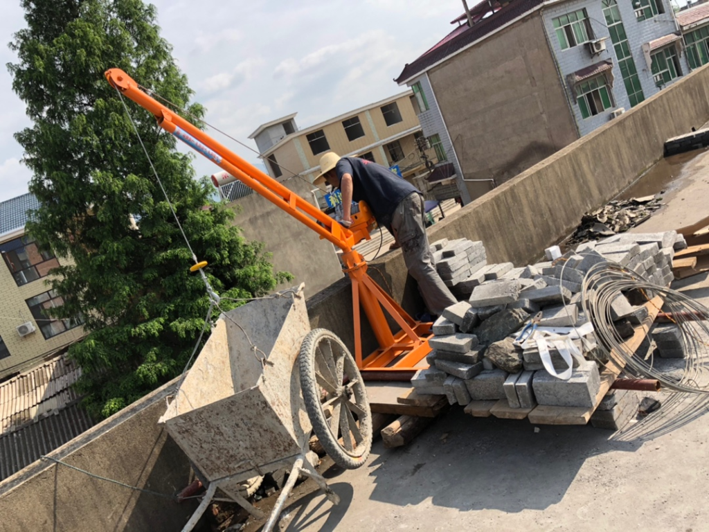 Will the crane flip over during use? No, as long as we put two extension tubes on the base of the crane during lifting, press a counterweight on the tubes, and the counterweight ratio should be twice that of the heavy object. It should be noted that the goods cannot be overloaded and cannot exceed the actual lifting weight of the crane