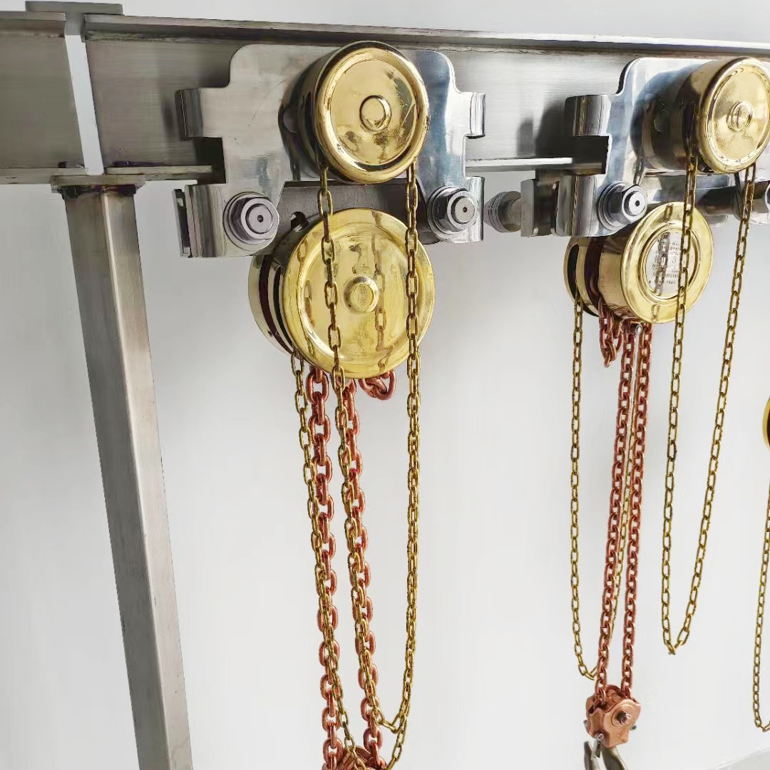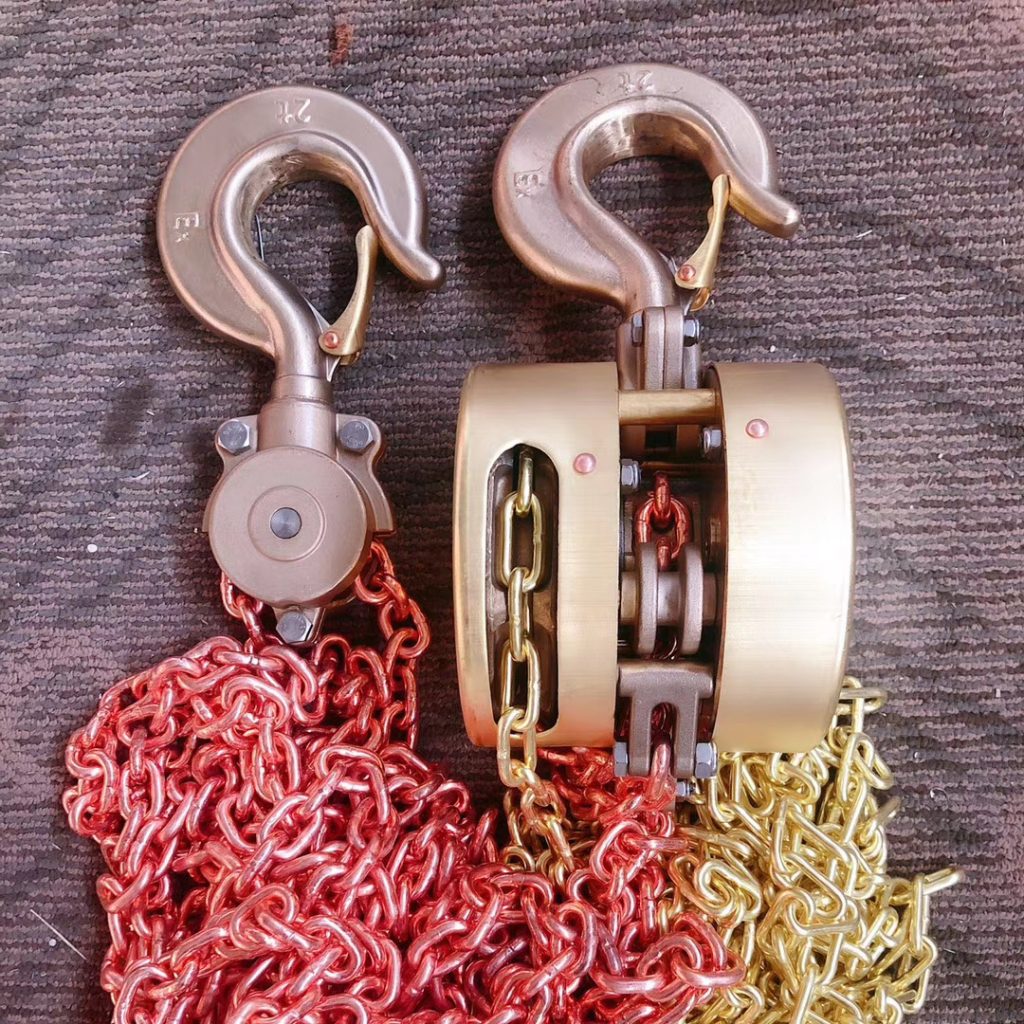 - All moving parts (e.g., gears, chains, hooks) are made of non-sparking materials like bronze, brass, or stainless steel to avoid friction-induced sparks.